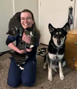 Haley began her career in the veterinary field in 2019 starting as a veterinary assistant/receptionist, where she also foster-failed her first dog! Haley then made her transition to veterinary technician and learned her passion for emergency and urgent care.